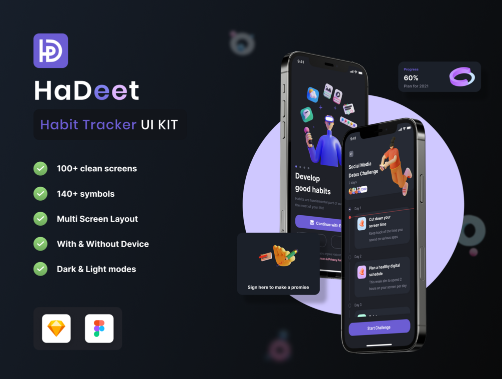 Hadeet is a Habit Tracking App iOS UI Kit that was specifically designed for iOS devices. It includes 50+ carefully crafted mobile application screens and 100+ Components. You can use to make your next iOS mobile application project brighter and more appealing to potential users.