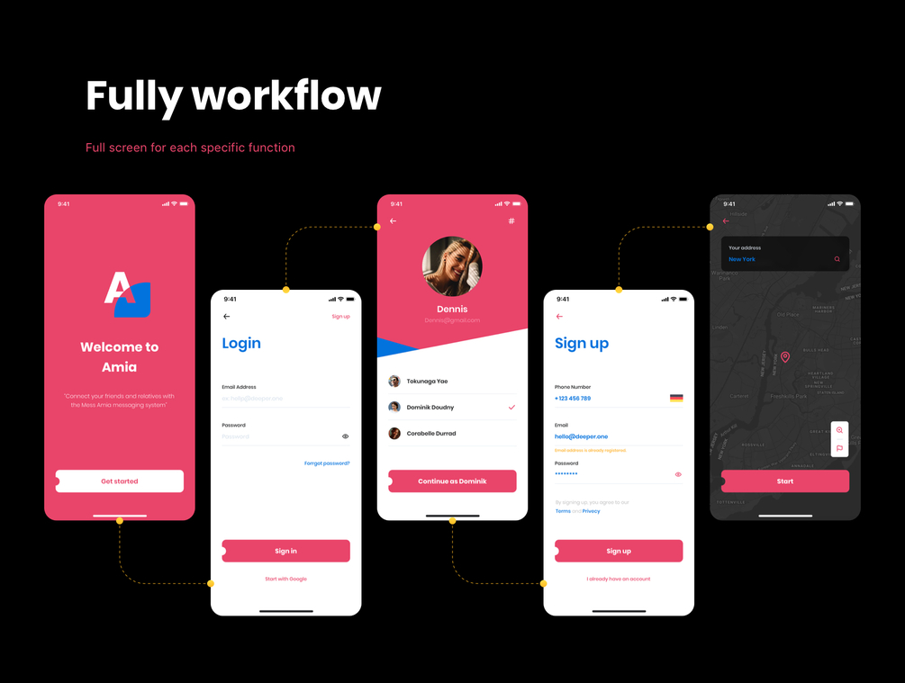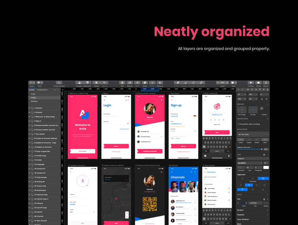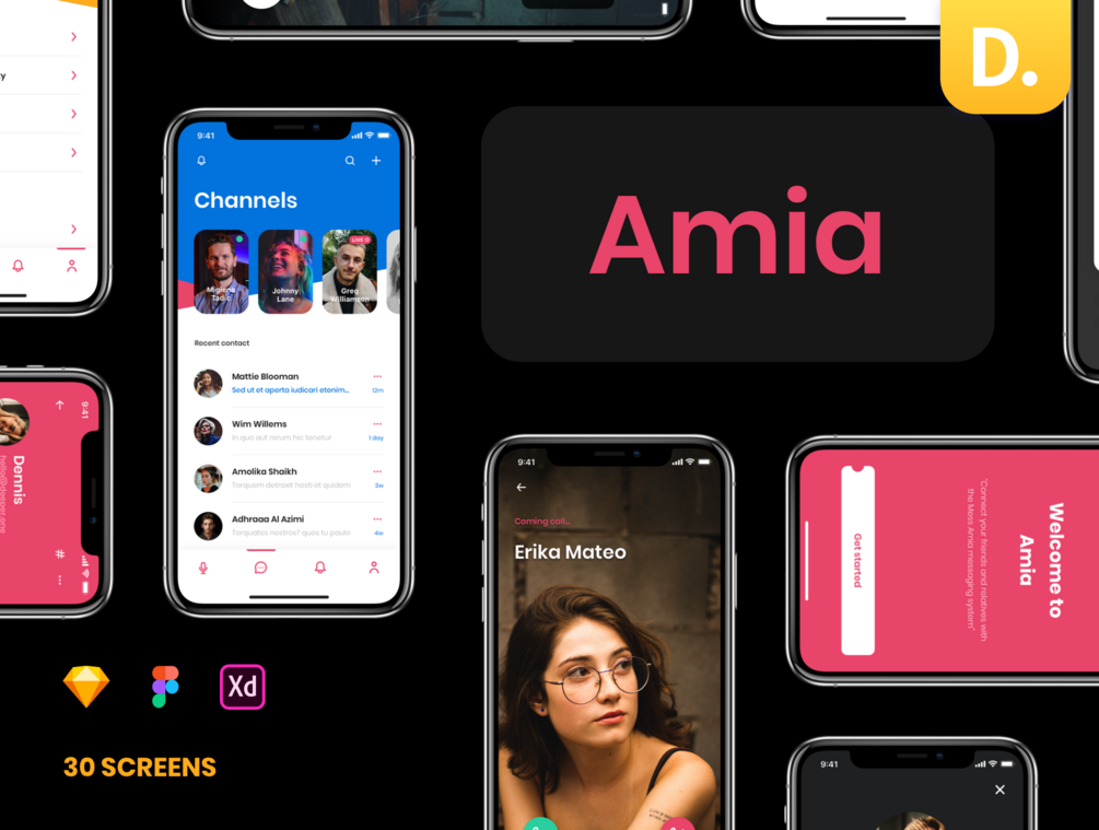 Amia - Messaging App UI Kit is a premium quality pack of 30 messaging app screens. Design the next best messager app experiencing using Amia. Amia - Messaging App UI Kit is 100% vector based and can be infinitely rescaled to fit your needs in Sketch, figma and Adobe XD.